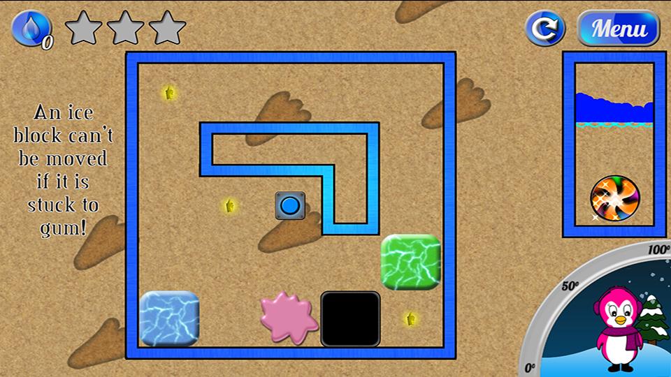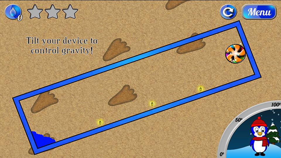 Melty está cansado do inverno frio. Ajude -o a se aquecer, completando quebra -cabeças desafiadores. Gire o dispositivo para mover a água ao redor da tela para coletar estrelas e encher o termômetro.
