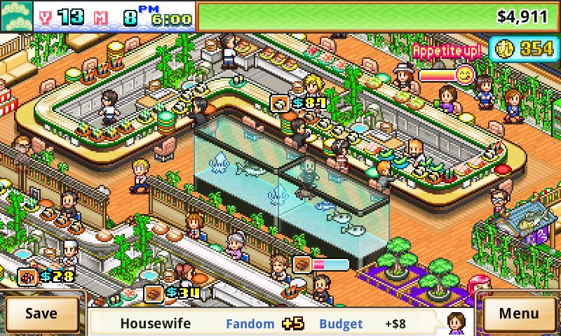 Mas é preciso mais do que comida fina para conquistar os clientes. Mostre seu talento criativo não apenas em sushi, mas no seu modelo de negócios, oferecendo comodidades que variam de barras de salada a anéis de sumô. Faça fãs suficientes e você desbloqueará todos os novos ingredientes e comodidades-e novas possibilidades com eles!
