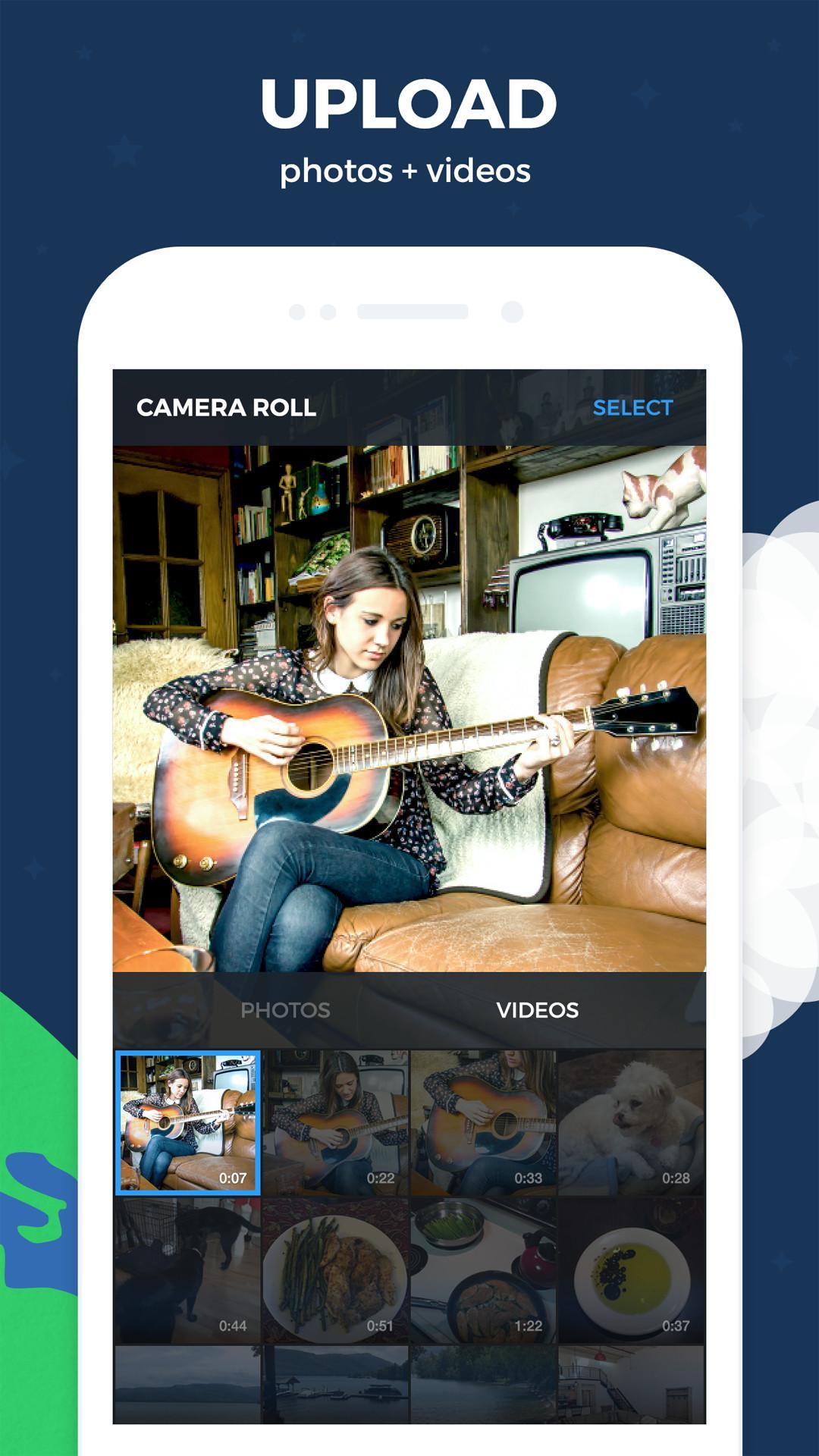 • Загрузить фотографии и видео или создать оригинальный контент в приложении