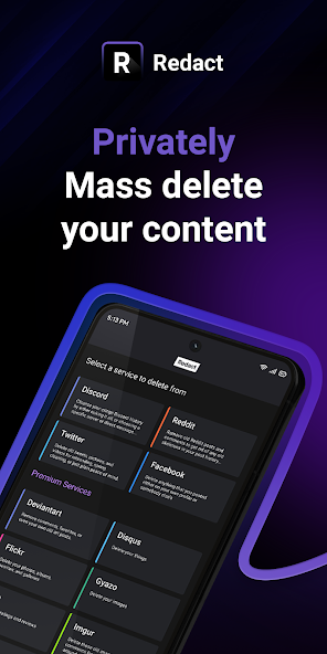 Redact - единственное приложение для всех инклюзивных, которое дает вам полный контроль над вашим присутствием в Интернете. Mass Delete Posts на всех самых популярных социальных сетях, включая Discord, Twitter, Reddit и Facebook и еще десятки, все из вашего мобильного устройства. Удалите твиты, сообщения, комментарии, лайки, фавориты, сообщения, изображения и многое другое.