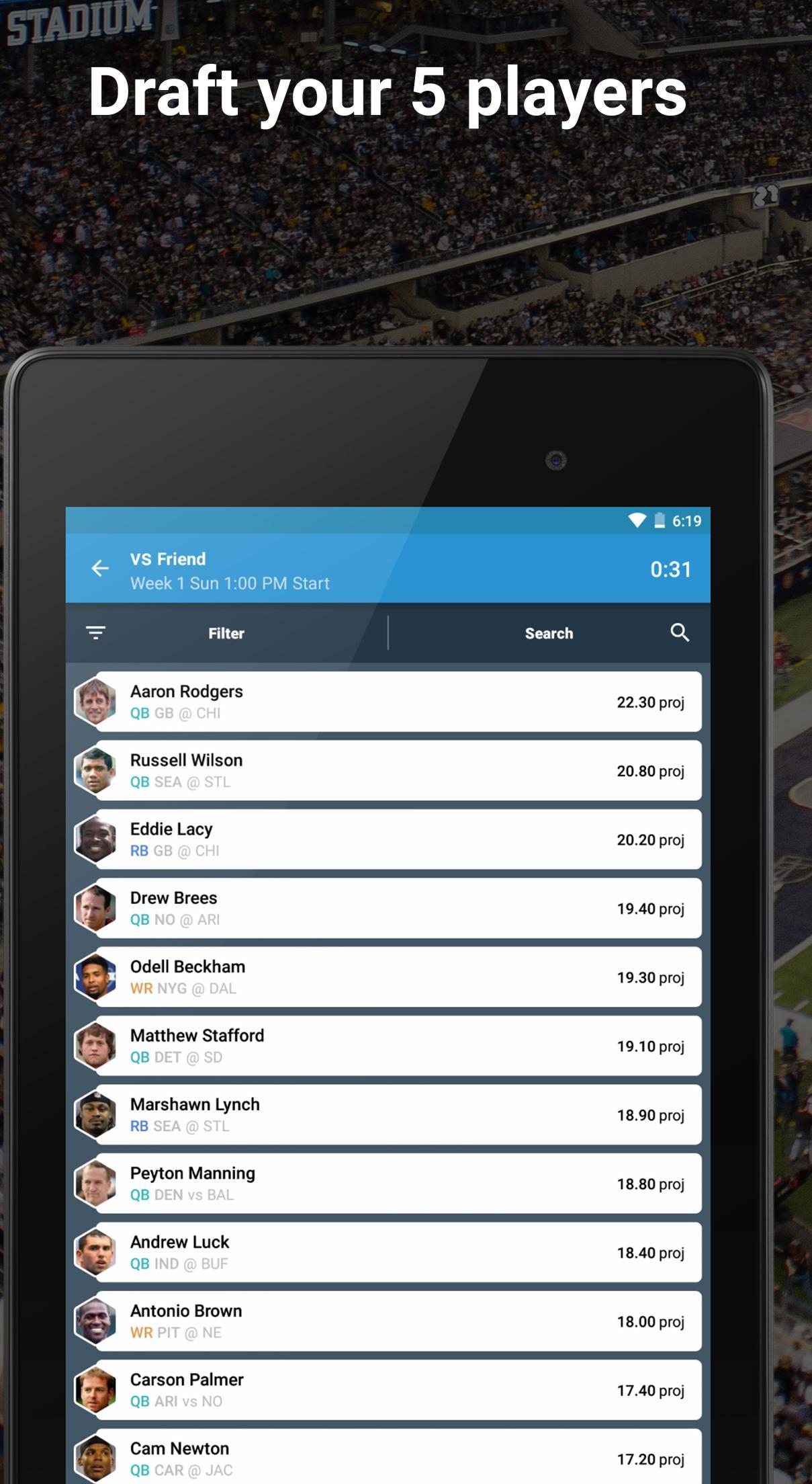 Поиск «Играть в драфте», чтобы найти наше новое приложение, где вы можете забросить реальные деньги.
