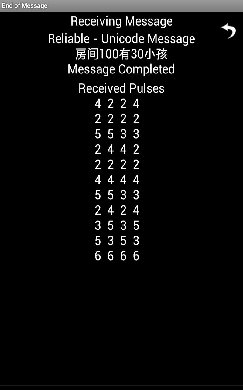 • Оставшиеся в живых от землетрясения или оползня, которые слышат отправленное сообщение, могут просто записать количество счетчиков каждой импульсной группы сообщения. Затем они берут подсчет пульса в местный полицейский участок для декодирования и передачи национальной организации спасения.