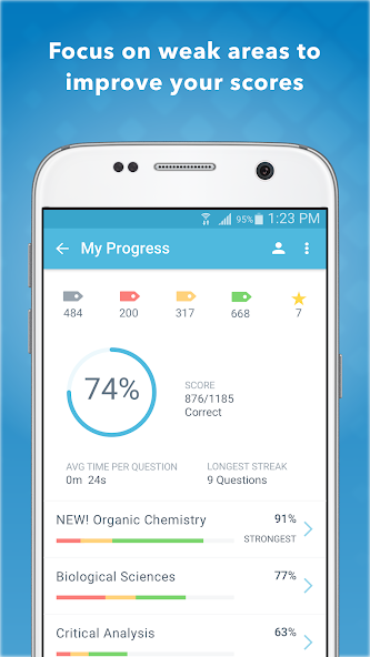 Pre Medical Mastery -это качественный инструмент качества, который многие студенты использовали для максимизации своего потенциала оценки MCAT. Premed Mastery отслеживает ваш прогресс, чтобы рассказать вам, где ваши знания сильны и где вам нужно улучшить, чтобы вы могли лучше сосредоточить свое время обучения.