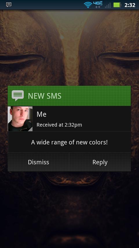 В сочетании с новым обновлением для всплывающих уведомлений для Android, которое позволяет пользователям выбирать другую тему для каждого пользовательского контакта, мы с гордостью даем вам новый пакет темы для полного использования новой функции. В этом пакете темы вы найдете шесть новых тем различных смелых цветов. Включены красный, оранжевый, желтый, зеленый, синий и фиолетовый.