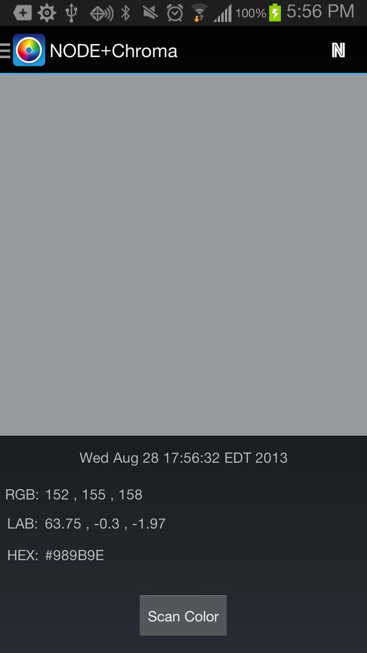 С площадью измерения 1,9 см2, время измерения приблизительно (1) второго и Bluetooth -соединения с интеллектуальными устройствами, Node+Chroma делает цветовое сканирование и общение по -настоящему мобильным. Цветная графика, отображаемая на устройстве iOS или Android, является приблизительным представлением; Конкретная информация о цвете получена с помощью цифровых данных, передаваемых цветом. Коллекция цвета и история сканирования хранятся на интеллектуальном устройстве.