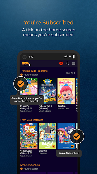 Добавьте предметы, чтобы посмотреть позже и отслеживать живые телевизионные программы, а также для просмотра.
