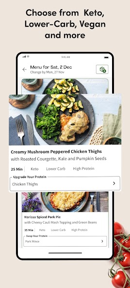 Вы также можете изменить подписку на комплект для еды и выбрать между вашими предпочтениями всего за несколько кликов, чтобы снять стресс из вашего еженедельного планирования и приготовления пищи. Хотите попробовать кето и веганские блюда за одну неделю? Это легко с приложением Green Chef.