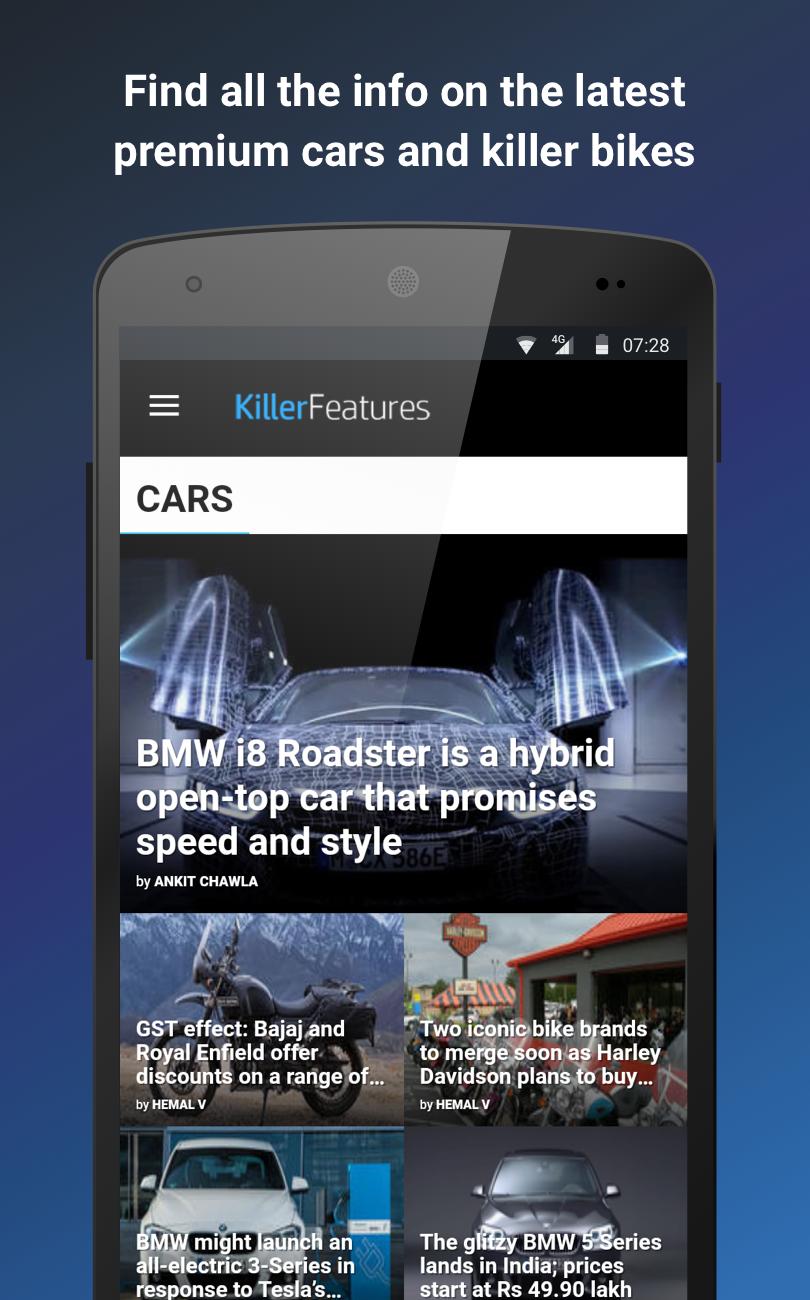 Не только гаджеты, но и ваши любимые автомобили и велосипеды также появятся в приложении. Мы также ободрим информацию о последних запусках и ценах в режиме реального времени. Так что, если вы ждали, чтобы узнать об этом новом автомобиле Maruti или о новом мотоцикле KTM, Killer Features вы покрыли.