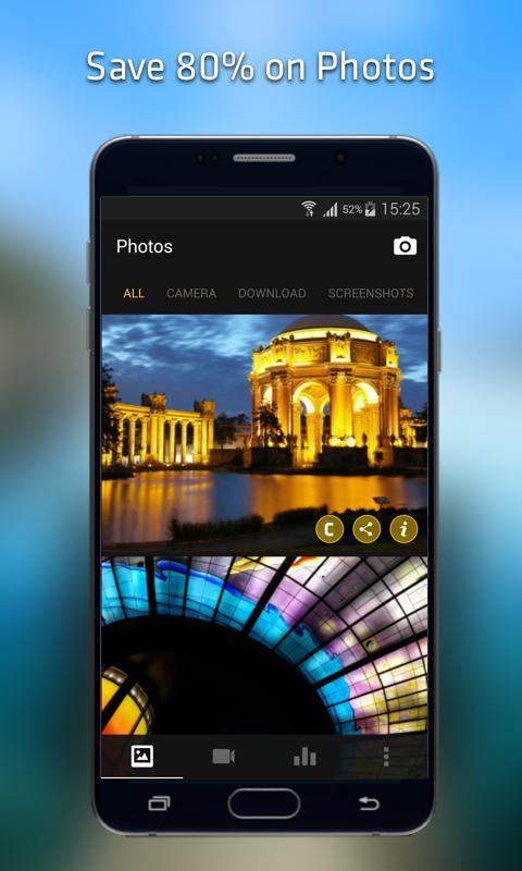 Get storage space back on your Android smartphone with the smart and beautiful Crunch Gallery . Выборочно выбирайте фотографии и видео из вашей галереи и позвольте Crunch работать в магии - создавая высокие качественные версии размером с файлов, используя проприетарные фото и видео технологии. Маленький действительно красивый! Crunch - это отличный пространство, с которым вы продолжаете возвращаться снова и снова. Вы сэкономите время и деньги с того момента, как начнете использовать Crunch!