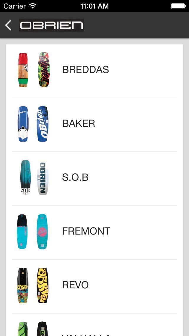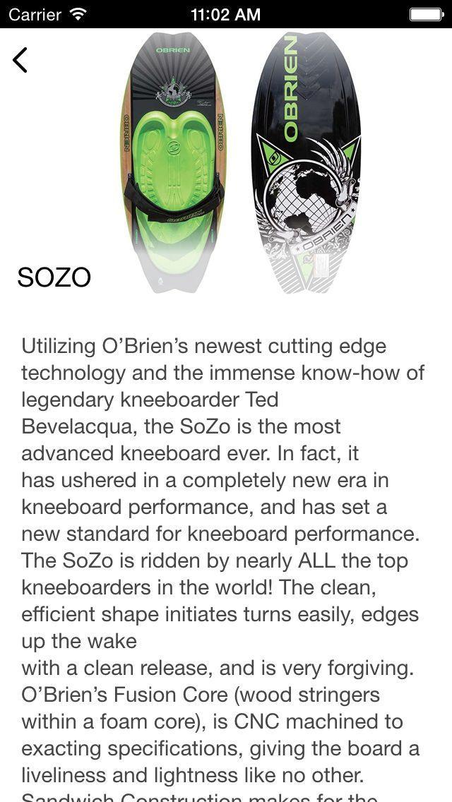 Мобильное приложение O'Brien Watersports. Особенности включают: