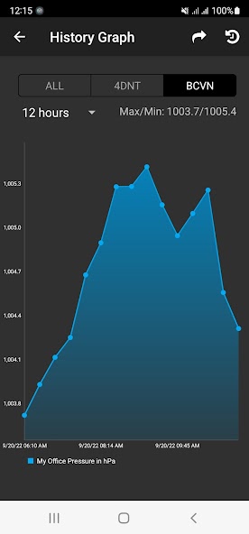 • «Отслеживание давления» и «График истории» для монитора атмосферного барометра.