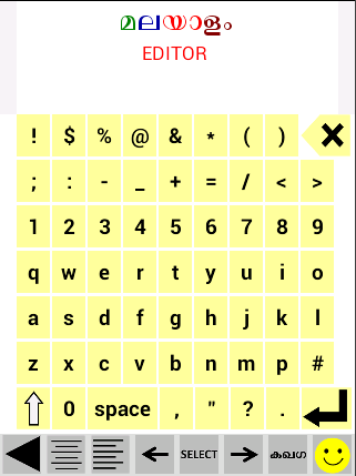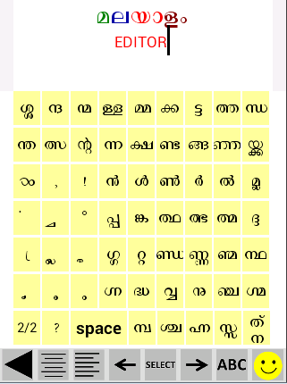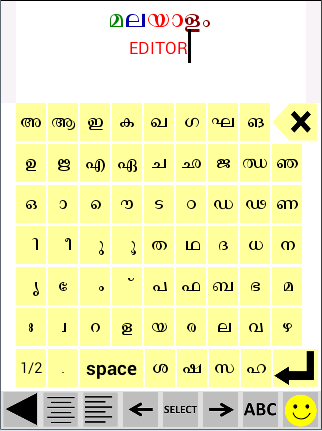 Клавиатура Malayalam, включенная в это приложение, имеет очень простой макет. Malayalam Keyboard имеет ключи, расположенные в порядке 'varnmala, а клавиатура английского языка имеет макет Qwerty.