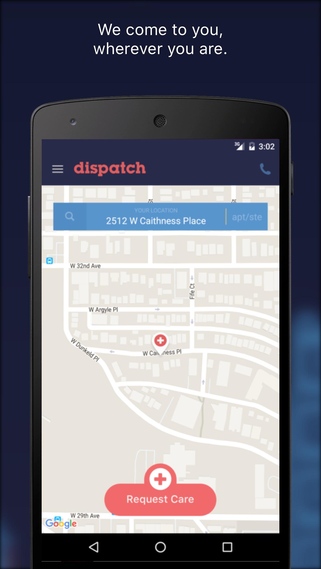 DispatchHealth ™-это неотложная медицинская служба по требованию, которая отправляет медицинскую команду, чтобы не выпустить ваш дом или офис. Наша медицинская команда состоит из тех же клиницистов, которые вы бы увидели в своей местной неотложной помощи или отделении неотложной помощи, они просто стучат в вашу входную дверь. Мы лечим широкий спектр общих травм и заболеваний без хлопот, поспешных в ER или неотложную помощь. В сети с большинством страховки, включая Medicare и Medicare Advantage.
