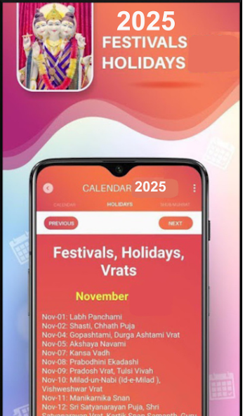 Indian festival calendar 2025: Festival calendar 2025 easily gives the list of all festivals for 2025 across India. Its an Offline calendar to know your festivals