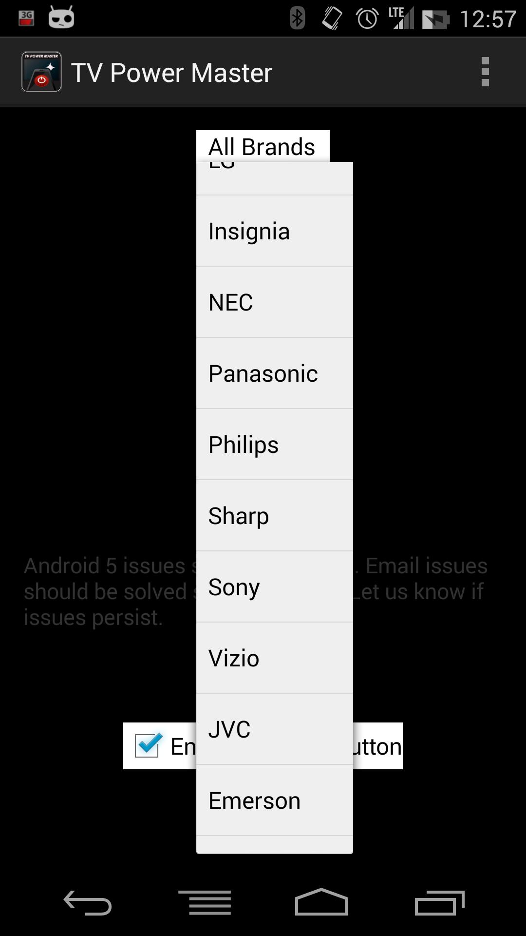 Это приложение работает на велосипеде по кодам включения/выключения для кучи крупных брендов. Это бесплатная версия этого приложения, и в нем есть реклама. Премиум, идентичная версия (без рекламы) можно найти здесь: https://play.google.com/store/apps/details?id=com.limeysoft.tvoff.premium