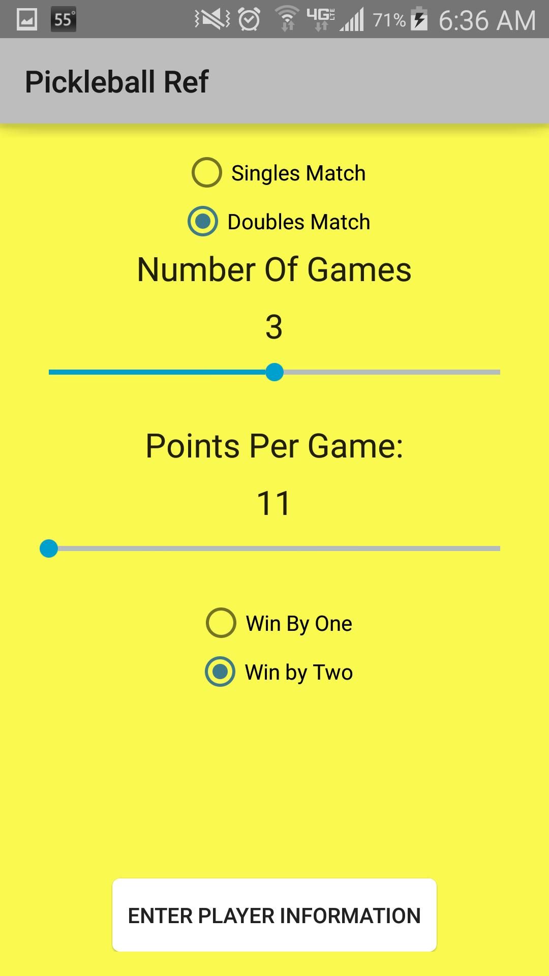 Pickleball Ref был создан, чтобы упростить сохранение счетов для Pickleball, когда судейство или изучение, как играть. Единственное необходимое действие - это вступление в информацию об игре и выбор, кто выигрывает каждую точку. Приложение сделает для вас оставшуюся работу. Включает в себя секундомер тайм -аута и возможность выбирать матчи 1,3 или 5 игр, игры до 11,15 или 21 очка, и если игры выигрывают на два или выигрывают одним. Приложение синхронизируется с какой стороной суда, на которых лежат игроки, а также показывает, где должны стоять сервер и получатель.