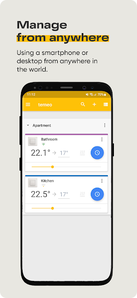 Управляйте всеми контроллерами отопления Wi-Fi terneo ™ в пределах одного приложения. Вы можете добавить любое количество устройств в свою учетную запись. Даже если они в разных комнатах. Даже если они находятся в разных домах. Вы не хотите настраивать каждый контроллер отопления отдельно? Просто скопируйте настройки из одного контроллера отопления в другой.