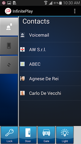 Приложение Infiniteplay позволяет вам видеть абонентов, не выходя из вашего зала или даже из сада. Infiniteplay позволяет вам получать аудио и видеозвонки с панели входа непосредственно на вашем смартфоне или планшете. Вы даже можете просматривать изображения видеокамеры, управлять приводами, открыть двери и вызвать другие устройства в системе.