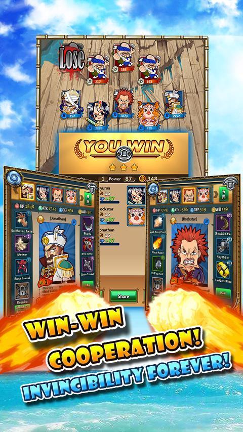 Создайте мощную команду! Завоевать свою Морскую империю! Сражайтесь с игроками по всему миру, чтобы стать пиратским королем! Ну давай же! Выполнить свою мечту во всем синем 2 сразу!