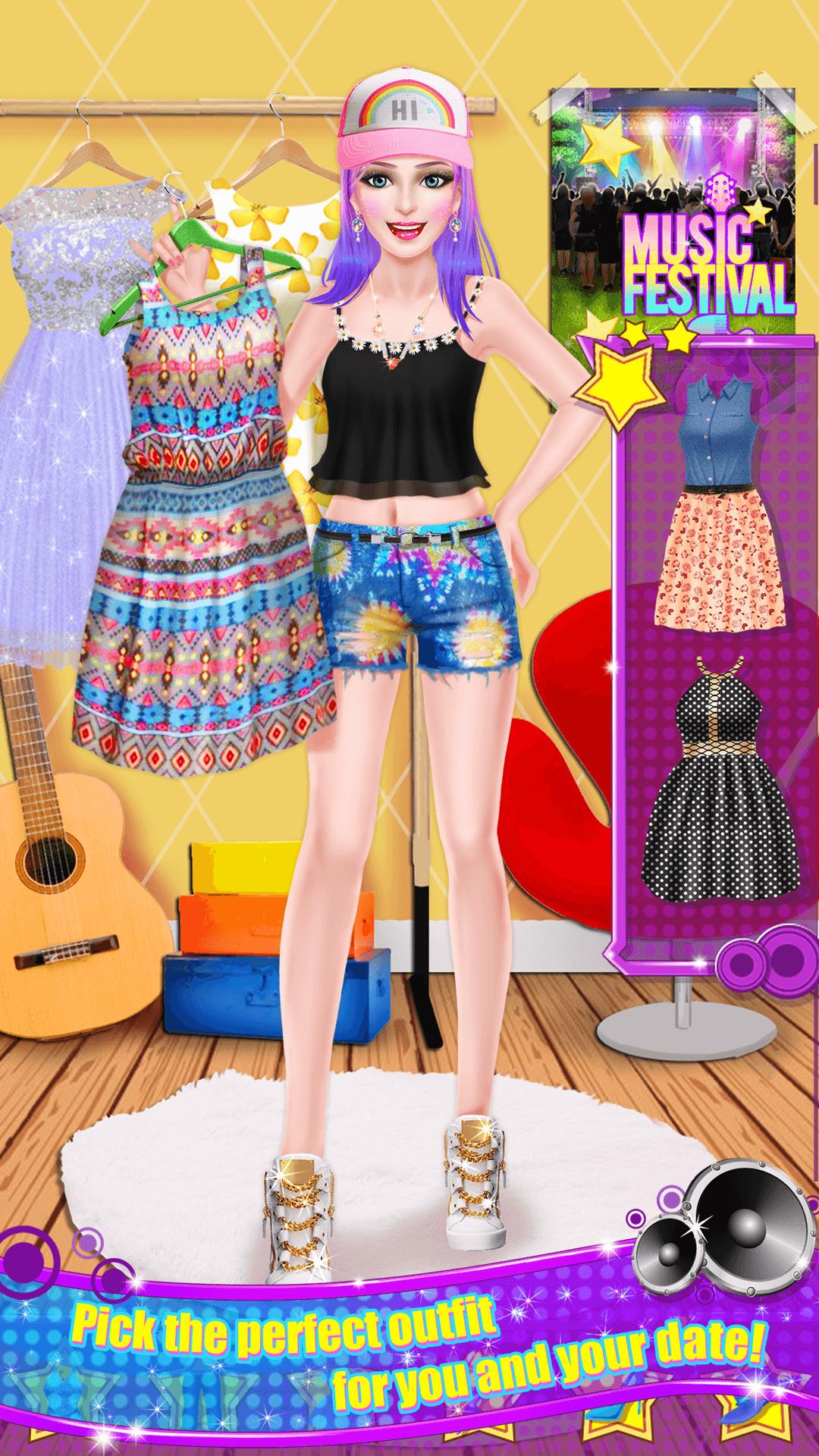 Music Festival Girl - концертная дата - это веселая игра по макияжу, которая позволяет вам получить все кубки на незабываемую ночь с вашей влюбленностью. У салона есть множество вариантов наряда, поэтому у вас никогда не хватает взглядов для того, что вы пожелаете сердцу. Запрыгните в кресло и получите красивую, расслабляющую спа-процедуру, чтобы очистить лицо и успокоить эти предварительные бабочки. Выберите милый макияж и прически, чтобы показать свои любимые активы: это ваша улыбка или ваши глаза? Наконец, одеться в горячий наряд, идеально подходящий для горячего свидания! Независимо от того, что вы выберете, это будет одна ночь, которую вы никогда не забудете!