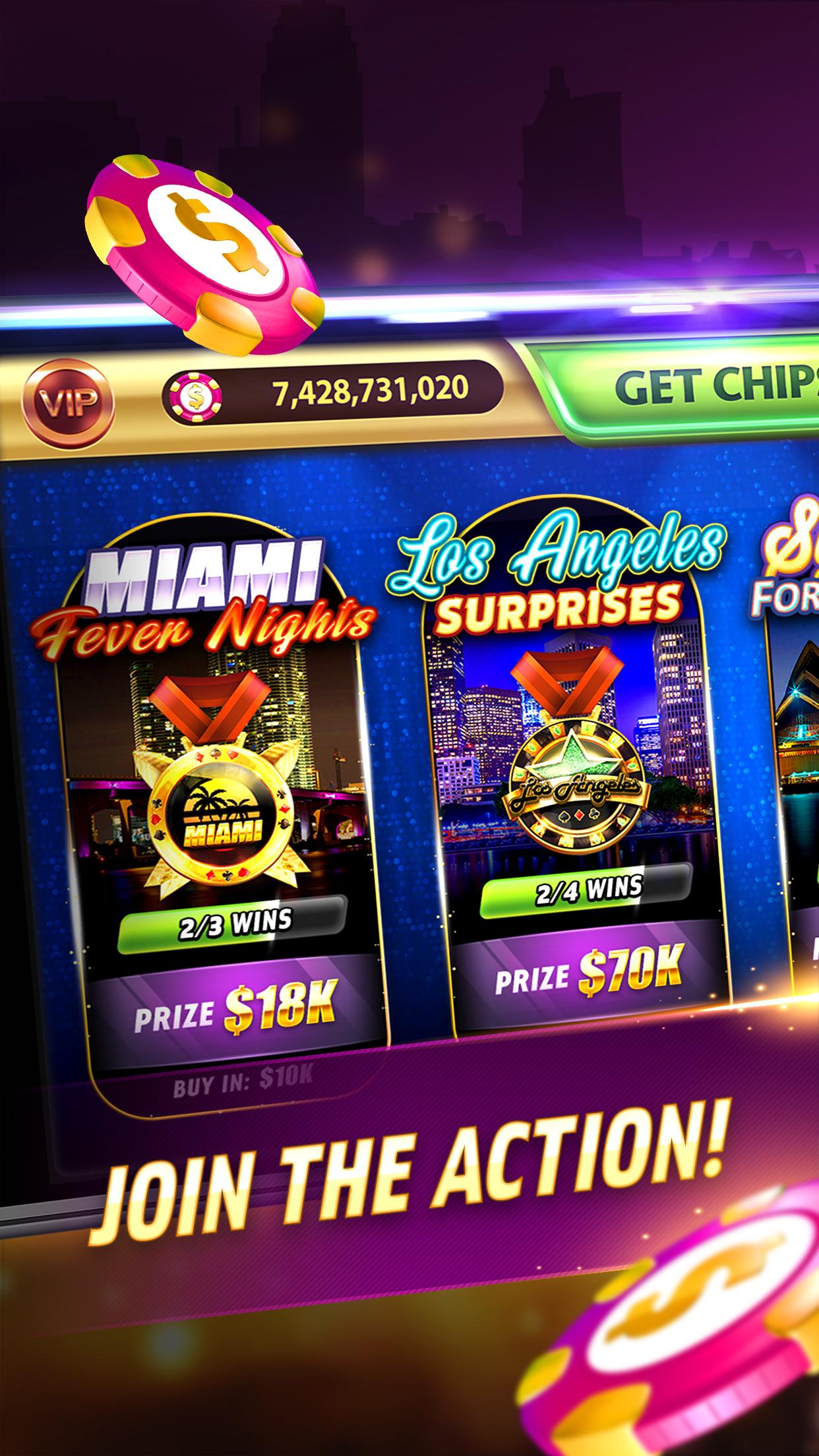 Наслаждайтесь бесплатными чипсами каждые 4 часа, прогрессивным ежедневным бонусом и большим количеством бонусов и льгот в игре.