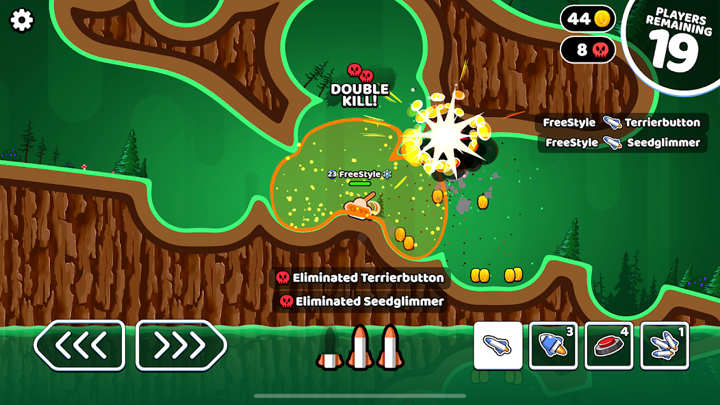Мощные, обдумывающие настенные, прыжок с ракетами, роботы, накапливающие артиллерию, являются автомобилем, выбранным в этой быстро меняющейся перестрелке, где цель-выжить дольше, чем соревнование. Соберите добычу, чтобы обновить свой арсенал, туннель в местность, чтобы укрыться и собрать захороненные сокровища, и избегайте повышения уровня воды, чтобы быть взрывом, стоящим!