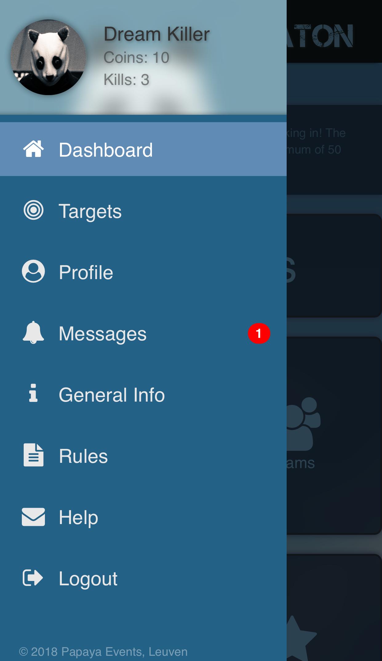 После подписания вы будете активированы и получите свой водяной пистолет в автобусную поездку или в бельгийском встроенном кемпинге 4 июля. После активации вы и ваши друзья можете сформировать команду. Как только игра начнется, приложение показывает, что ваши три личные цели будут устранить. Эти цели являются случайными участниками, которые не принадлежат вашей команде. Устранение происходит только на фестивальной местности, используя распределенные водяные пушки для опрыскивания воды на цель. После каждого исключения вы принимаете (сумасшедший) селфи в приложении с вашей целью, чтобы официально использовать преступление.