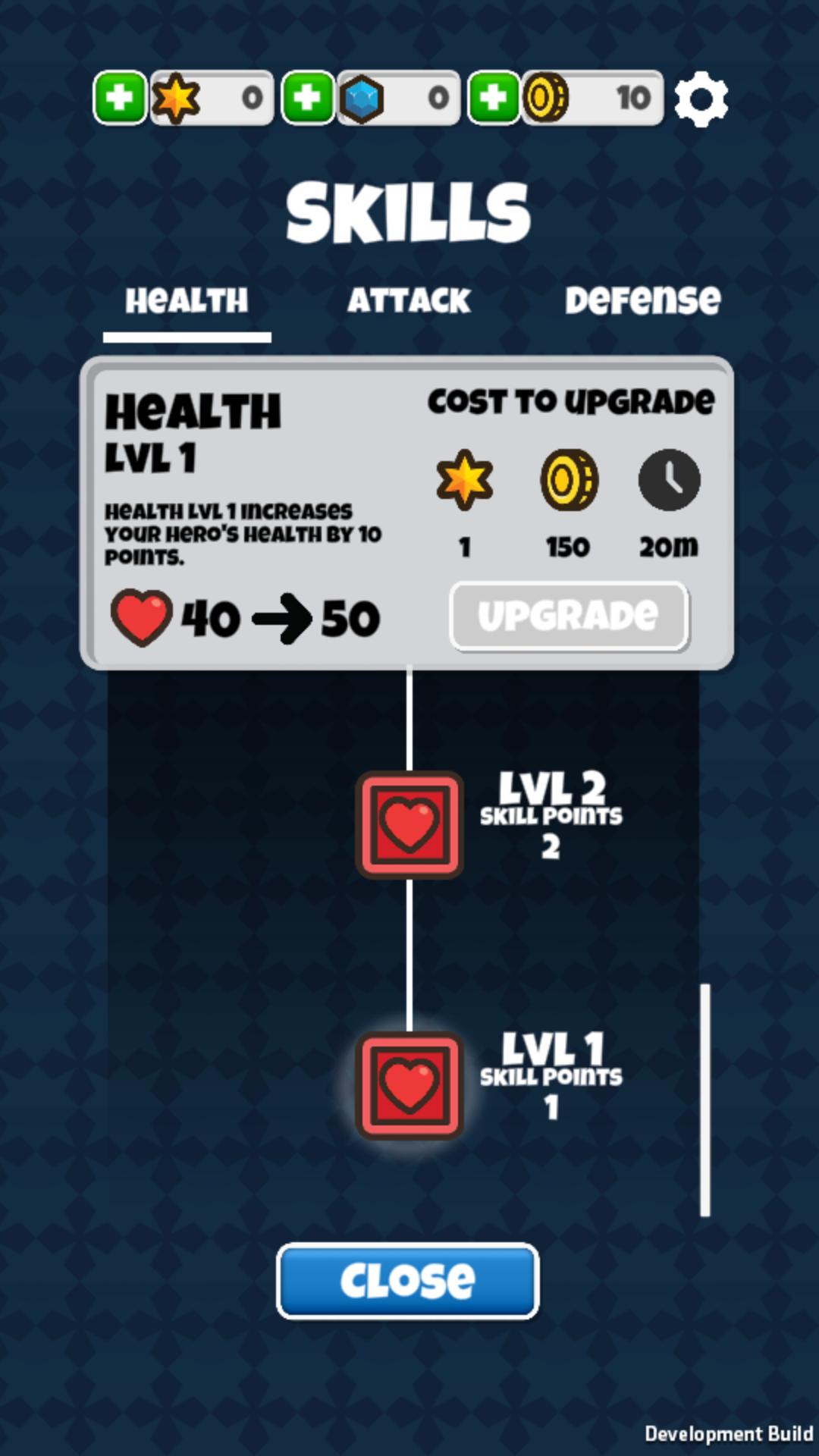 Выровняйте навыки вашего героя, чтобы увеличить здоровье, атаку и защиту