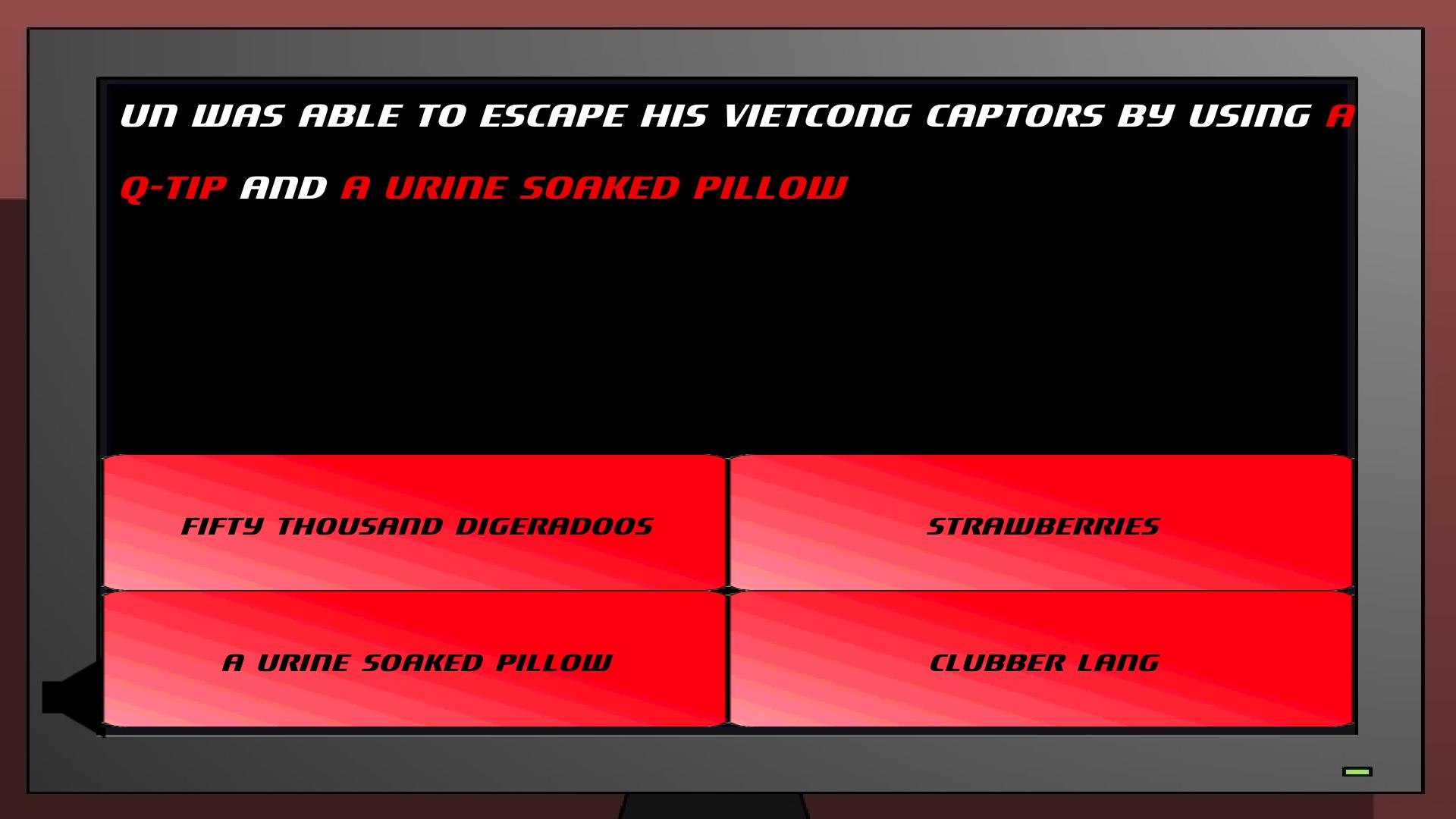 Oh Un! это революционная игра, в которой мы наконец -то встретились с действительно великим, умным, любящим, сострадательным лидером Северной Кореи Ким Чен Ун. Присоединяйтесь к ООН в его приключении, чтобы сбежать из северокорейского комплекса (его особняка), пытаясь разбить удар президента Обамы.