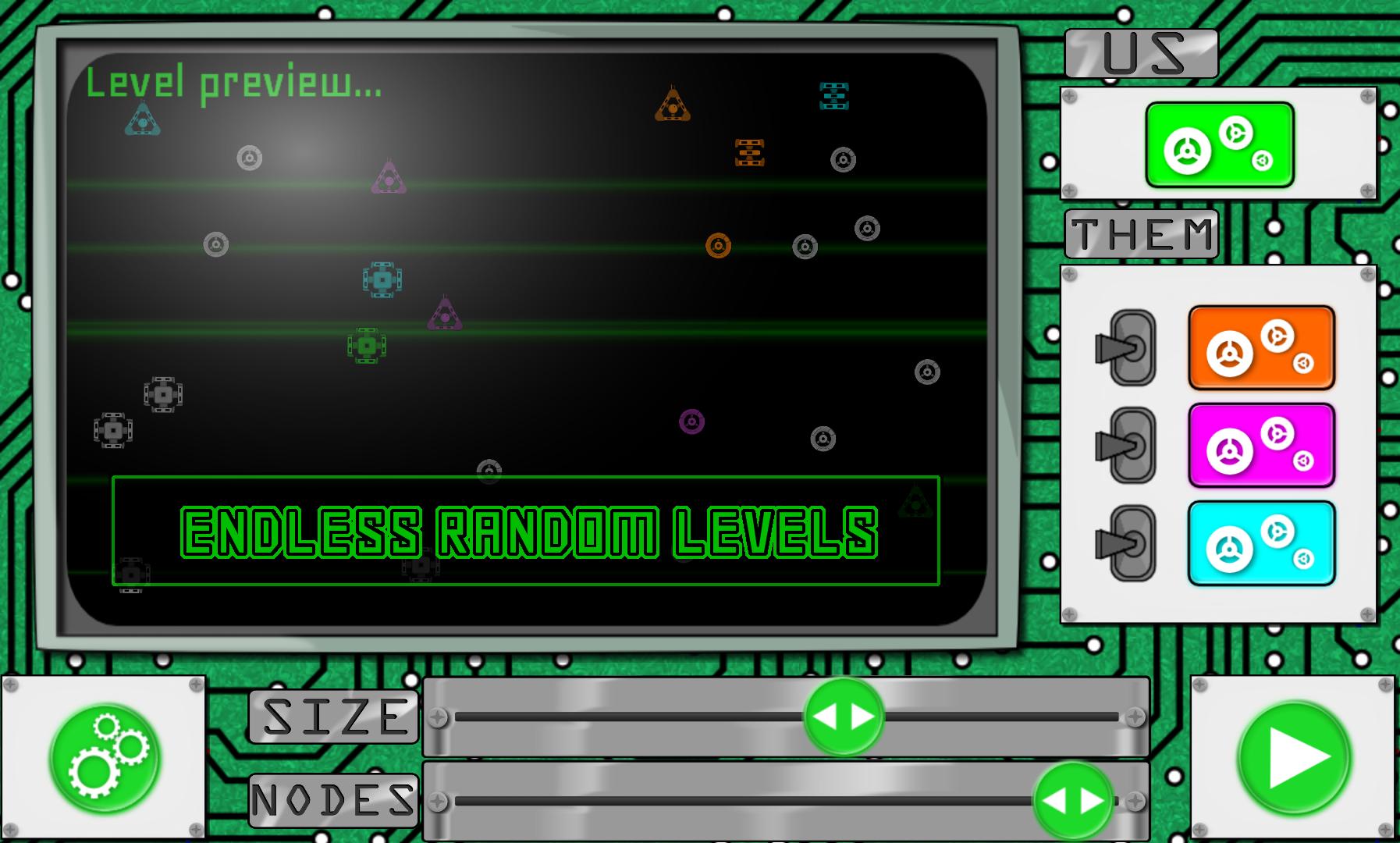 Запланируйте свои атаки, чтобы запечатлеть самые тактически выгодные узлы и добавить тактические обновления на ваши станции. Играйте против трех команд искусственного интеллекта в матчах, которые легко поднять, но трудно освоить.