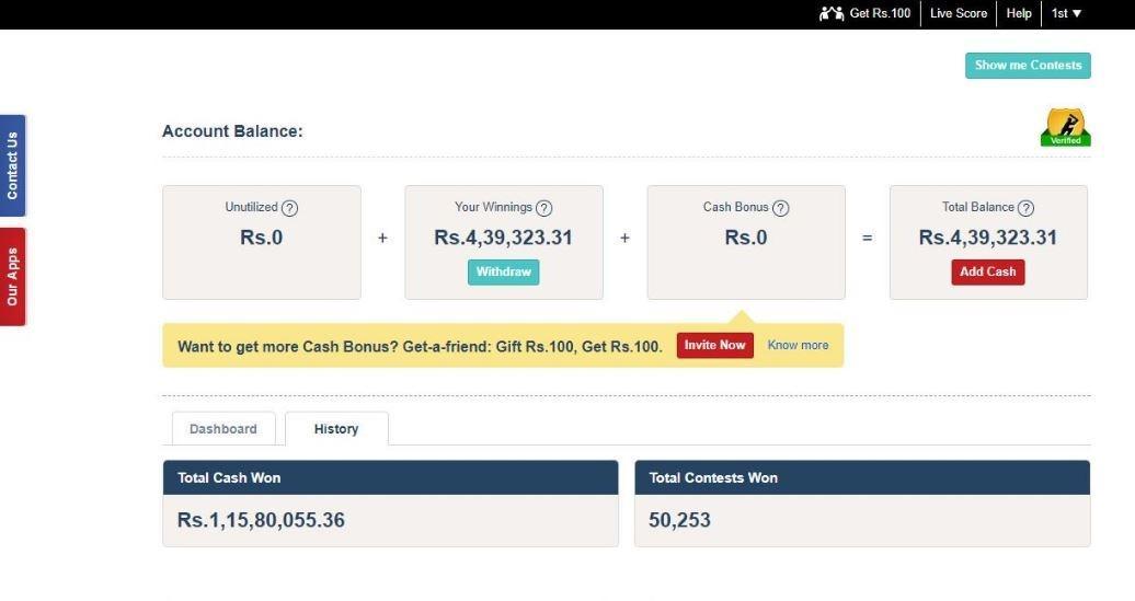 KC выиграл около 1,5 крор в Dream11 и множество больших призов, таких как автомобиль, велосипеды и т. Д. По всему миру.