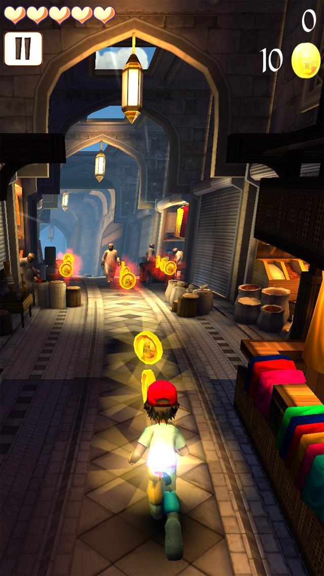 Соберите монеты и достижения, пока уклоняетесь от препятствий, чтобы заработать новых персонажей на настоящем арабском старом рынке.