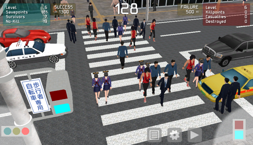 Ваша цель состоит в том, чтобы заработать «SavePoint», позволив пешеходам и автомобилям безопасно проходить.