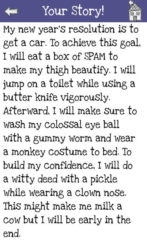 Вы выбираете цели, продукты, части тела, одежду, волшебное число и объедините их вместе, чтобы получить непредсказуемую историю.