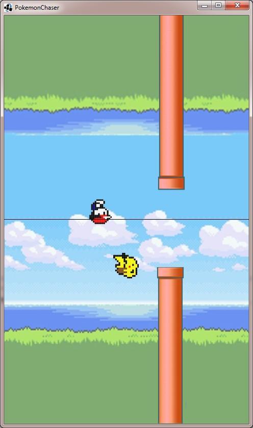 Poke Chaser похож на «популярную игру птиц», но он получает идею и меняет ее. Poke Chaser нуждается в двух игроках, каждый из которых держит одну сторону устройства. В настоящее время у нас есть два режима: сотрудничество и конкуренция.