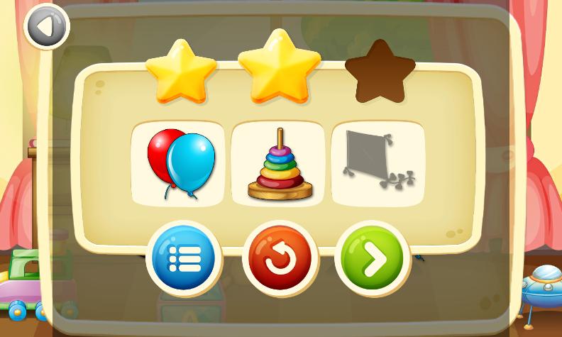 - «Звук памяти» (в одиночной игре) - ребенок адаптируется к паре изображений со звуками - к малышу может сыграть ребенка, чтобы получить все звезды в игре