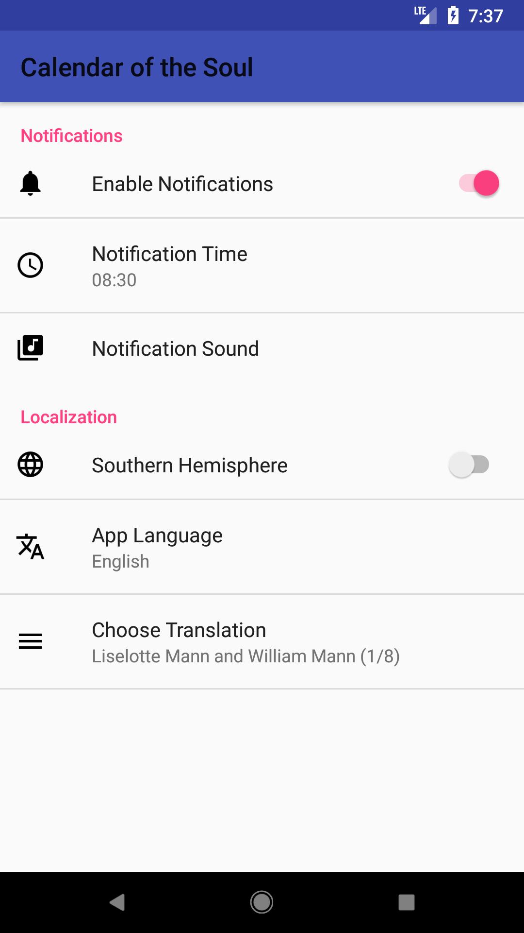Calendar of the Soul มีให้เลือกหลายภาษา หากต้องการมีส่วนร่วมในภาษาเพิ่มเติมโปรดติดต่อผู้เขียน