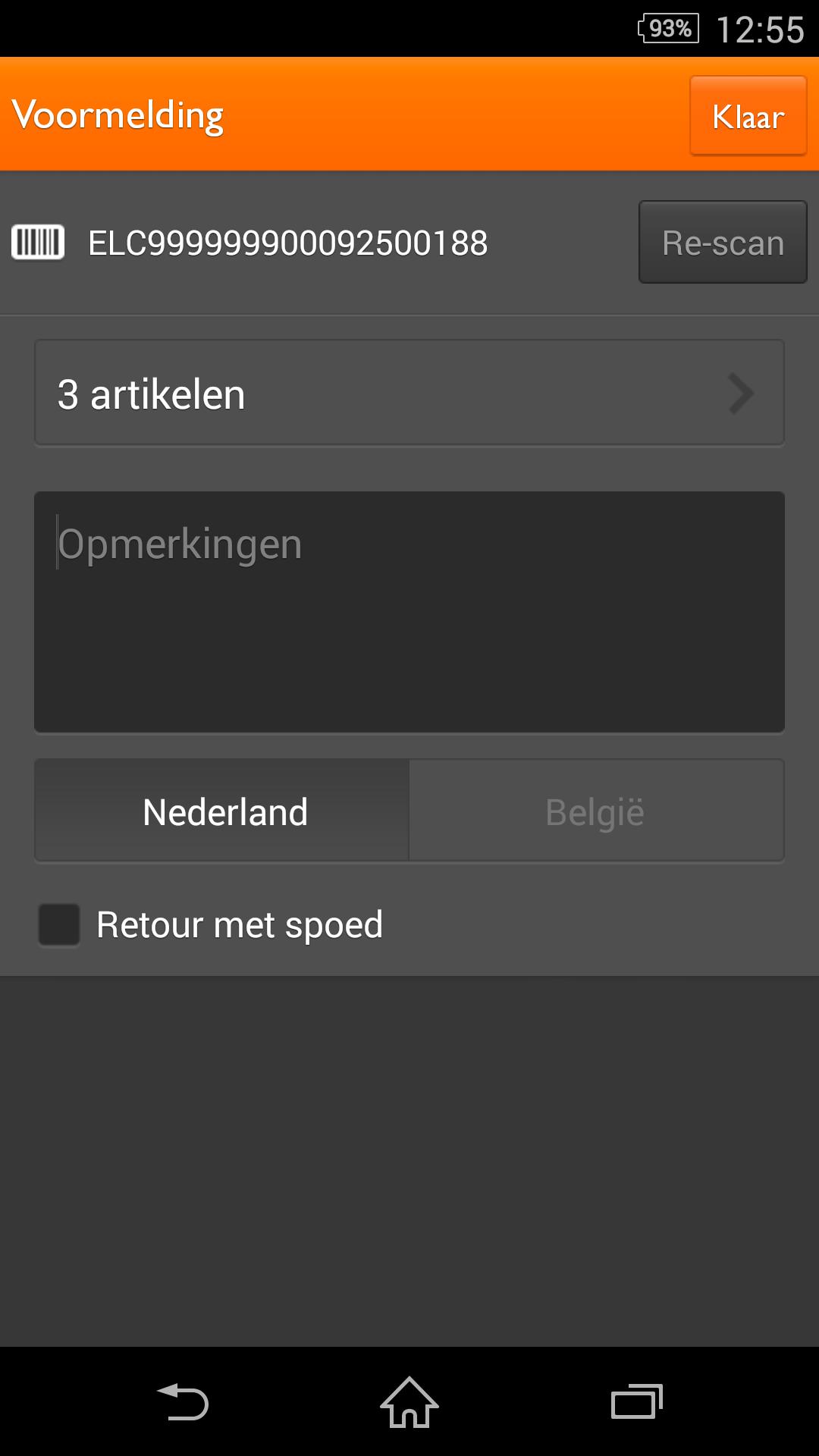 ด้วยแอพนี้คุณสามารถสแกนผลตอบแทนของคุณเอง คุณระบุว่าการจัดส่งเป็นเรื่องเร่งด่วนและคุณจะต้องได้รับในคืนเดียวกันหรือไม่ หากการจัดส่งไม่เร่งด่วนเราจะทำการส่งคืนในคืนถัดไปที่คุณได้รับการจัดส่งใหม่ การสแกนที่คุณทำให้มั่นใจได้ว่าการส่งคืนส่งคืนมาในรายการขับรถของไดรเวอร์ TNT Innight วิธีนี้ TNT Innight มีข้อมูลที่ถูกต้อง การสแกนยังช่วยให้มั่นใจได้ว่า บริษัท ของคุณรู้ว่าคุณกำลังส่งการจัดส่งคืนซึ่งช่วยประหยัดการทำงานสองครั้ง!