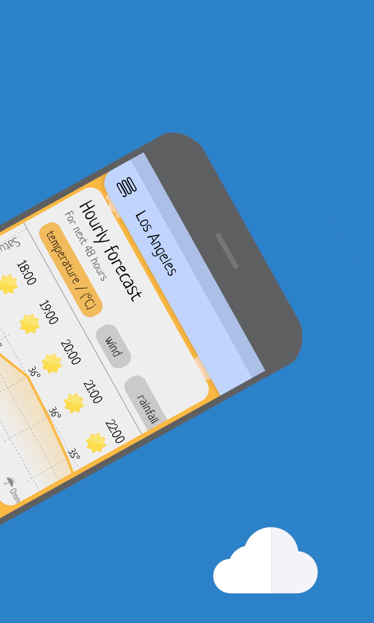 แอปพยากรณ์อากาศจะตรวจจับสภาพอากาศในตำแหน่งของคุณโดยอัตโนมัติ แสดงวันที่บนแผนภูมิที่สวยงาม ได้แก่ อุณหภูมิ ลม และปริมาณน้ำฝน นอกจากนี้ยังมีข้อมูลเกี่ยวกับความเร็วลม ทิศทางลม ความดัน ความชื้น เมฆปกคลุม ทัศนวิสัย ดัชนีรังสียูวี จุดน้ำค้าง พระอาทิตย์ขึ้นและพระอาทิตย์ตก