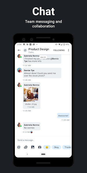 ตรวจสอบสถานะสถานะและส่งข้อความแบ่งปันไฟล์และเพื่อนร่วมงาน @mention ใน 1: 1 ห้องแชทส่วนตัวหรือสาธารณะ