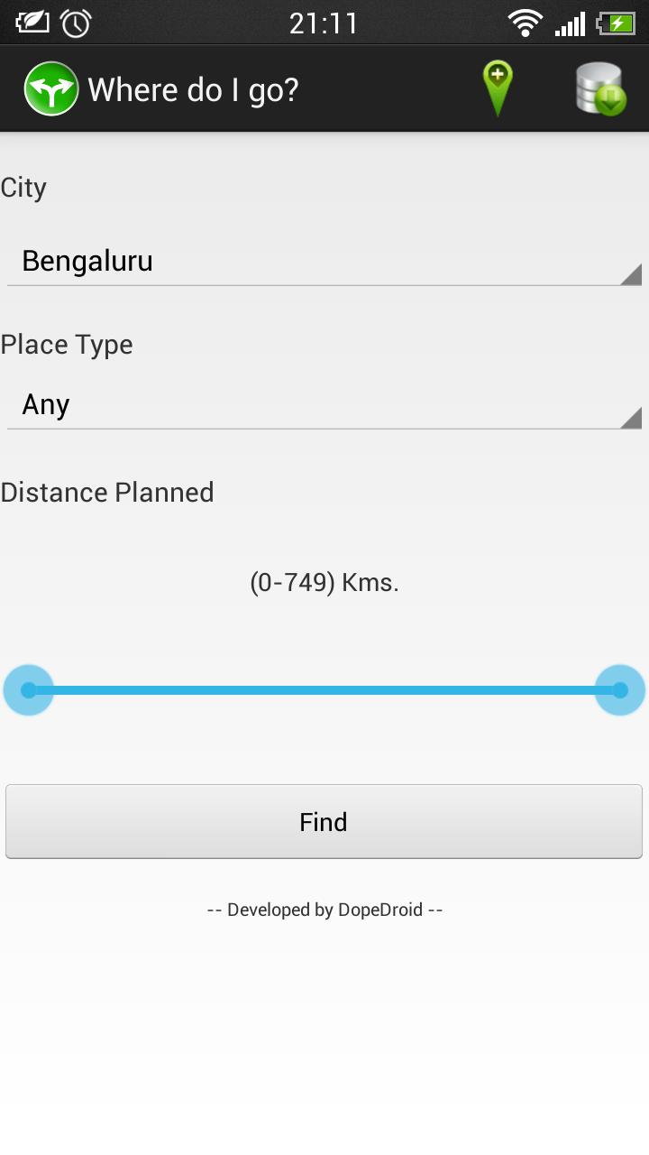 พวกคุณทุกคนที่ต้องการหยุดพักในช่วงวันหยุดสุดสัปดาห์หรือวันหยุดใช้เวลามากในการค้นหาสถานที่ " Where Do I Go? " เป็นทางออกที่สมบูรณ์แบบสำหรับเรื่องนี้ ด้วยแอพนี้คุณสามารถสำรวจสถานที่ในและรอบ ๆ Karnataka, Andhra Pradesh และ Tamil Nadu คุณสามารถค้นหาสถานที่ประเภทต่าง ๆ เช่นผู้แสวงบุญสถานีเนินเขาแม่น้ำสถานที่โบราณคดีเขื่อนสถานที่ศักดิ์สิทธิ์นกและพฤษภาคมอีก แอพนี้ยังให้ข้อมูลเกี่ยวกับอาหารความพร้อมใช้งานของที่พักและสภาพถนนของแต่ละสถานที่ที่ระบุไว้ในแอพ