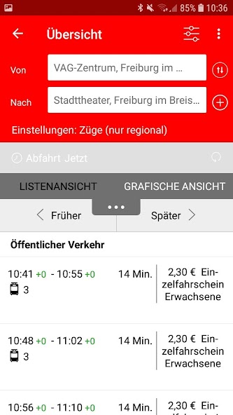 ด้วย VAG mobil แอพอย่างเป็นทางการของ Freiburger Verkehrs AG คุณจะพบวิธีการเข้าถึงจุดหมายปลายทางที่ง่ายที่สุดที่ไหนและเมื่อรถบัสและรถไฟถัดไปออกไปหากการเชื่อมต่อที่คุณต้องการตรงเวลาและถ้าคุณชอบรถบัสรถไฟจักรยานและการแชร์รถ