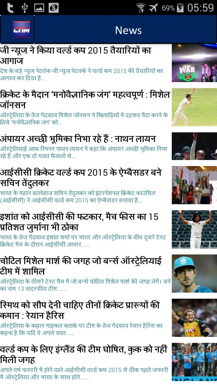 ข่าวคริกเก็ตล่าสุดการจัดอันดับ ICC ตารางเวลาที่กำลังจะมาถึงแกลเลอรี่ภาพถ่ายบอลโดยคำอธิบายข้อความบอล, e -Shopping ของผลิตภัณฑ์คริกเก็ตและอื่น ๆ อีกมากมาย - เป็นสิ่งที่ต้องทำสำหรับแฟนคริกเก็ตทุกคน แอปพลิเคชันมีให้บริการเป็นภาษาอังกฤษภาษาฮินดีมาราธีคุชราตและเบงกาลี