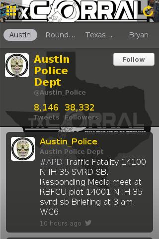 " Tx Corral " ถูกสร้างขึ้นสำหรับคุณ เราได้ออกแบบแอปพลิเคชันที่จะแจ้งให้คุณทราบทั่ว Central Texas ทุกอย่างในแอพนี้สามารถพบได้ทางออนไลน์ Tx Corral ถูกสร้างขึ้นเพื่อปรับปรุงชุมชนและหน่วยงาน ข้อมูลเกี่ยวกับแพลตฟอร์มเครือข่ายสังคมออนไลน์ได้รับการปรับปรุงโดยเจ้าหน้าที่ข้อมูลสาธารณะของกรมตำรวจแต่ละคน