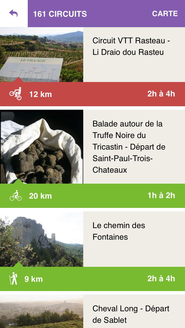 Escapado ช่วยให้คุณค้นหาเลือกและเรียกดูการเดินป่าเดินเท้าโดยจักรยานหรือปั่นจักรยานเสือภูเขารวมถึงไวน์ของไวน์ในโปรวองซ์ระหว่างDrômeProvençaleและ Haut Vaucluse