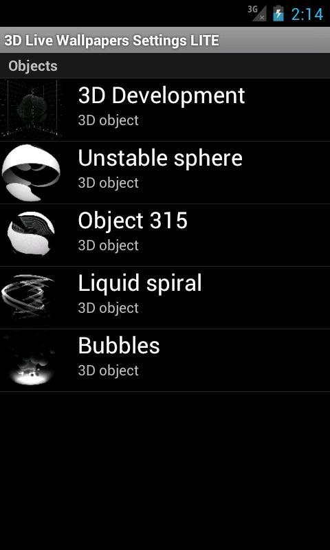 แอปพลิเคชันมีวอลเปเปอร์สดสองสามรูปแบบในรูปแบบของ 3D ซึ่งจำเป็นต้องเปลี่ยนการตั้งค่าแอปพลิเคชันเพื่อเลือกสไตล์ที่ต้องการ