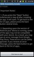 Ideal Accessibility Installer เป็นแอพพลิเคชั่นที่ออกแบบมาเพื่อให้ง่ายต่อการติดตั้งแอพพลิเคชั่นกลุ่มในอุดมคติที่สามารถเข้าถึงได้มีประโยชน์การศึกษาและความบันเทิงสำหรับทุกคน ... รวมถึงบุคคลที่มีความพิการพิมพ์