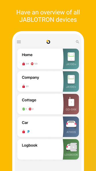 ด้วยแอปพลิเคชันคุณจะสามารถควบคุม Jablotron 100, Oasis, Azor, GD-04K หรือ Athos Alarm และดูสมุดบันทึกของอุปกรณ์ที่รองรับเช่นหน่วยติดตามหรือสัญญาณเตือนรถยนต์