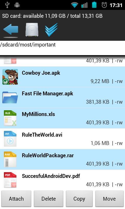 ด้วย Fast File Manager คุณสามารถสร้างลบแนบ zip เปลี่ยนชื่อและย้ายไฟล์เดียวหรือหลายไฟล์ได้ทุกครั้ง มันเรียบง่าย - และอยู่ที่ปลายนิ้วของคุณ เปิดและเปลี่ยนชื่อโฟลเดอร์ได้ทันที - ตัดและวางโฟลเดอร์ไปยังสถานที่อื่นในอุปกรณ์มือถือของคุณ เรามีคุณสมบัติขั้นสูงที่อัดแน่นไปด้วยแพ็คเกจที่เรียบร้อยและสะอาด หากคุณเห็นไฟล์รูปภาพที่คุณต้องการดูเพียงแตะที่มันเพื่อเปิดหน้าต่างตัวอย่าง