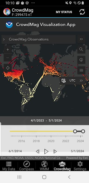CrowdMag เป็นแอพที่ให้คุณวัดสนามแม่เหล็กท้องถิ่นโดยใช้สมาร์ทโฟนของคุณ คุณสามารถดูข้อมูลเป็นกราฟหรือแผนที่ในหน่วย Nanotesla CrowdMag วัด Z (ส่วนประกอบลงด้านล่าง), H (ความเข้มในแนวนอน) และส่วนประกอบสนามแม่เหล็ก F (ความเข้มทั้งหมด) คุณสามารถใช้ CrowdMag สำหรับการวัดข้อมูลแม่เหล็กในระหว่างกิจกรรมกลางแจ้งในขณะที่บินหรือทำการทดลองของคุณเอง นอกจากนี้คุณยังสามารถแบ่งปันกับ NOAA เพื่อช่วยให้นักวิทยาศาสตร์เข้าใจสนามแม่เหล็กของโลกได้ดีขึ้น